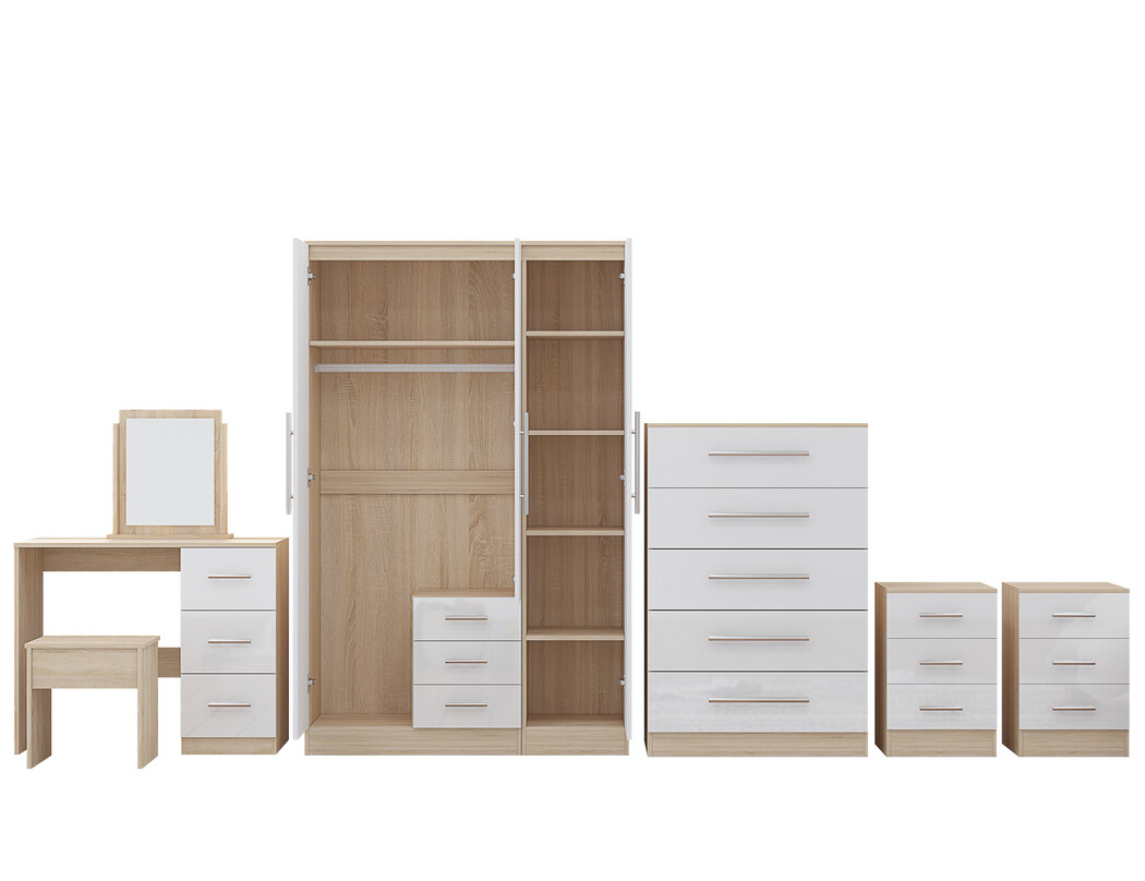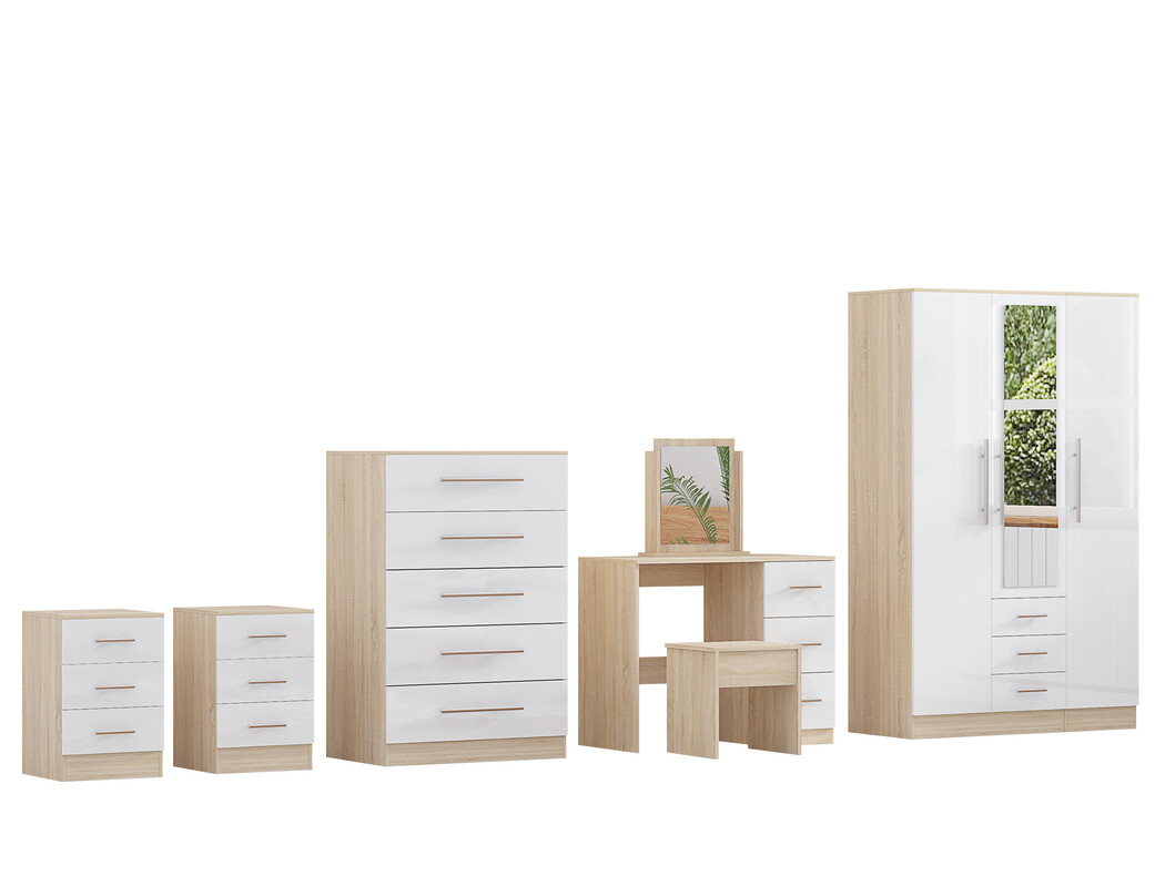 High Gloss Quattro Bedroom White Set Wardrobe, Chest, Bedside, Dressing Table