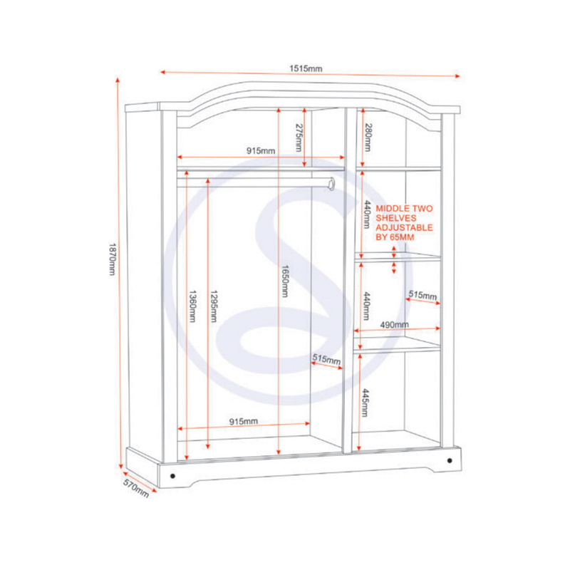 Assembled Sizes: W:1515 x D:570 x H:1870 (MM)