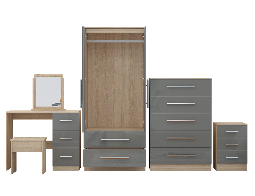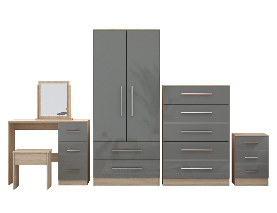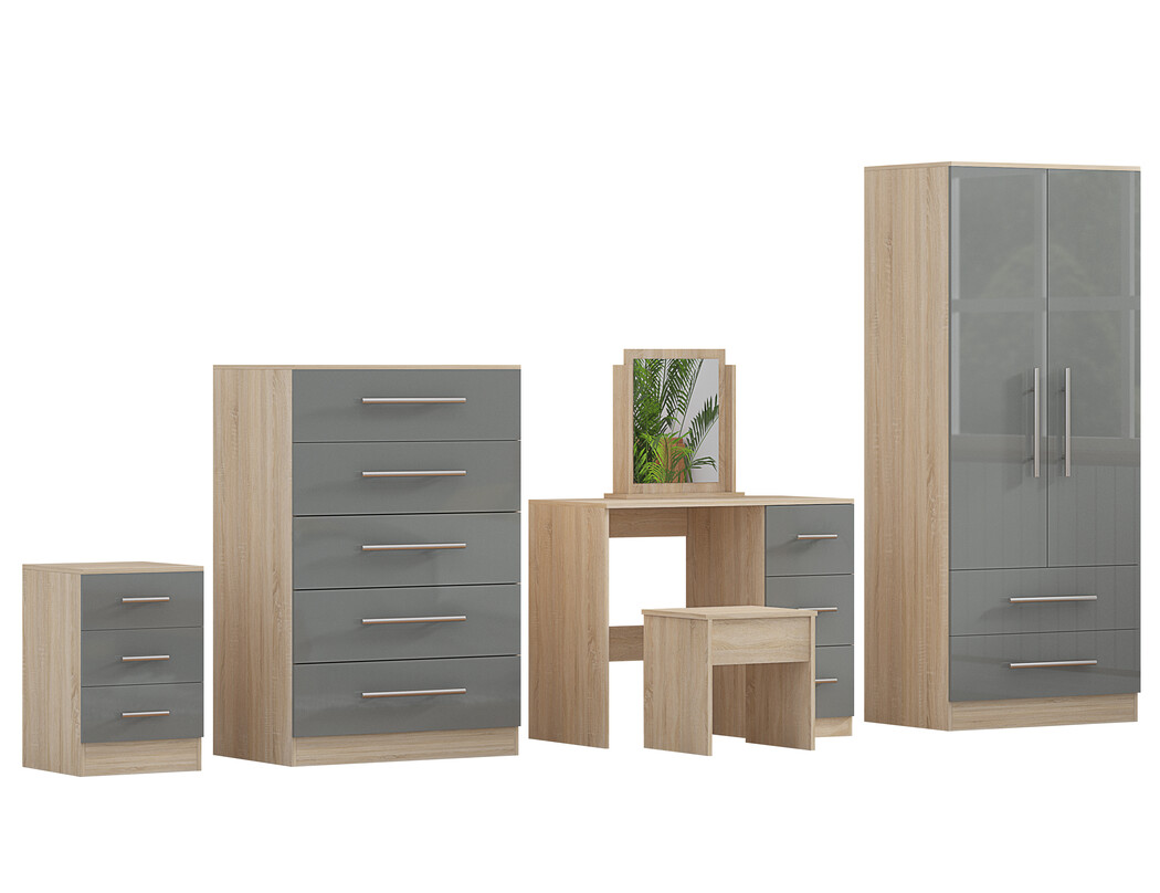 High Gloss Quattro Bedroom Grey Set Wardrobe, Chest, Bedside, Dressing Table