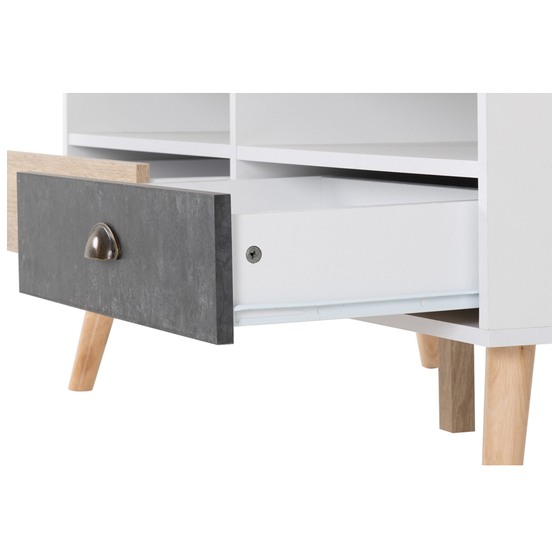 Composite Board, 3d Paper/plastic Veneer, Paper/plastic Veneer, Mdf Drawer Base, Metal Handles, Metal Drawer Runners, Pine Feet